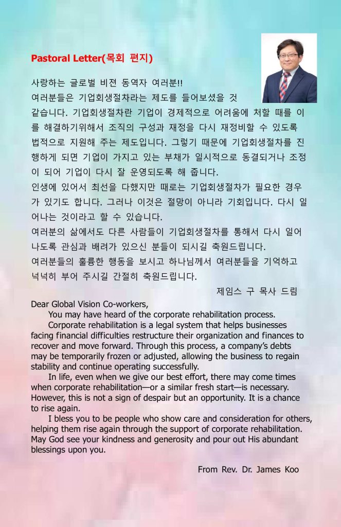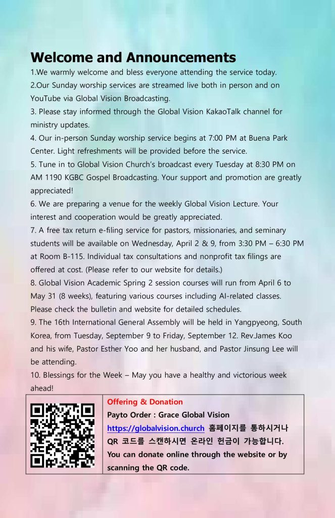 3. Please stay informed through the Global Vision KakaoTalk channel for ministry updates.