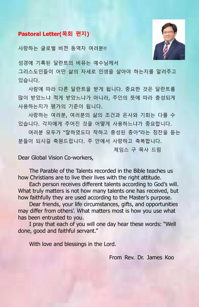 3. 사역소식 정보를 글로벌 비전 팀카톡으로 통해서 전달하고 있으니 사역에 관심있는 많은 분들을 초청 해 주시길 바랍니다.