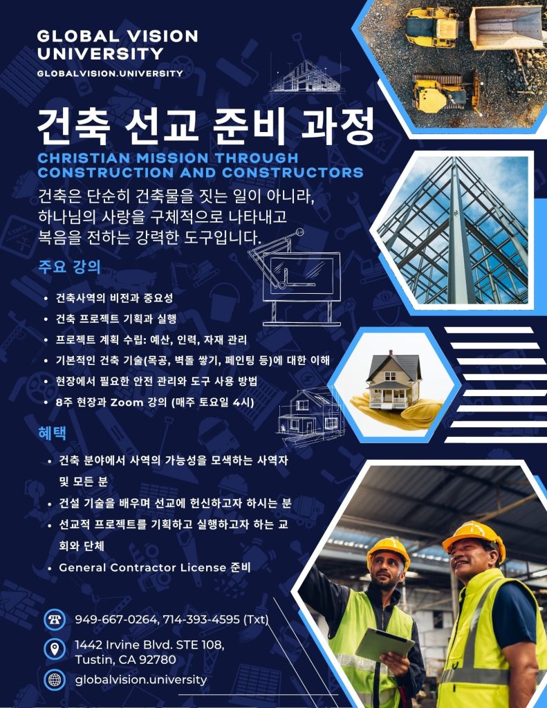 기술과 소명을 연결하는 특별한 강의, ‘Christian Mission through Construction and Constructor ’ 건축 선교 준비 과정이 개설되어 수강생을 모집하고 있다.