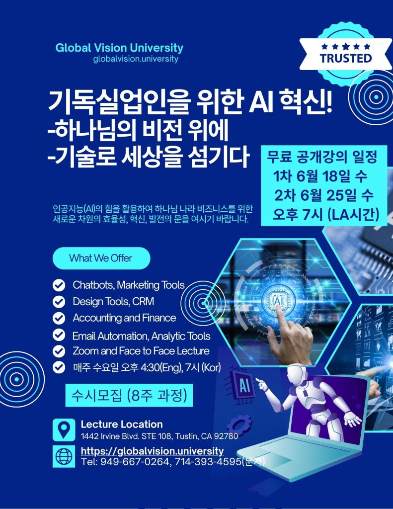 TUSTIN, CA | 2025년 6월 — 인공지능(AI) 시대를 살아가는 크리스천 실업인과 사역자들을 위한 특별한 무료 공개 강좌가 열립니다.