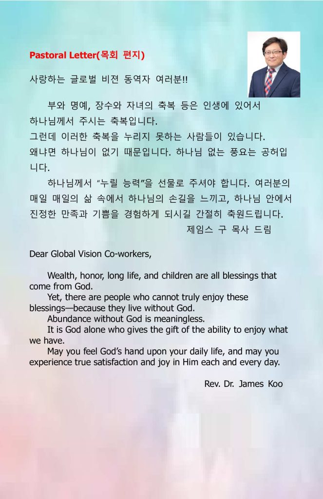 1. 글로벌 비전 교회 예배에 참석하신 모든 분을 환영하고 축복합니다.
