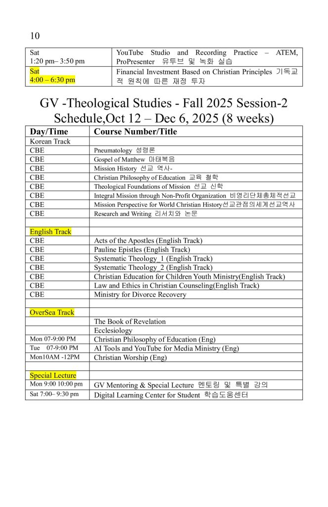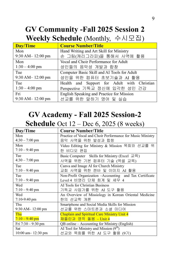 10. Global Vision Community 및 Academic Fall 2025- Session 2강좌 일정이 주보에 있습니다. 많은 신청과 홍보 바랍니다.