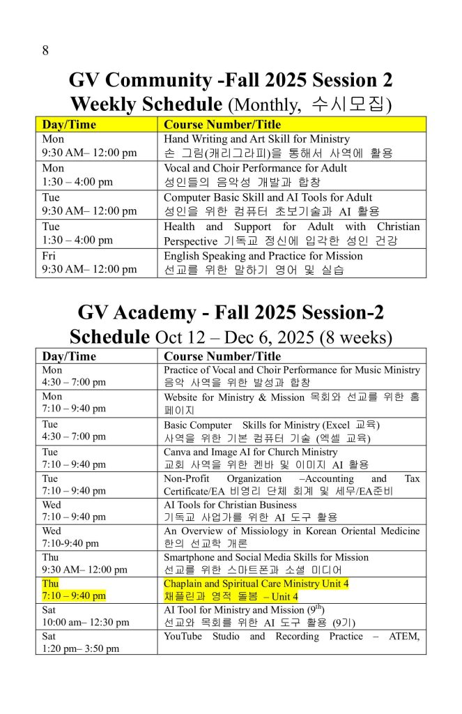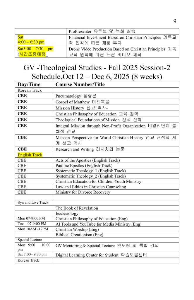 10. Global Vision Community 및 Academic Fall 2025- Session 2강좌 일정이 주보에 있습니다. 많은 신청과 홍보 바랍니다.