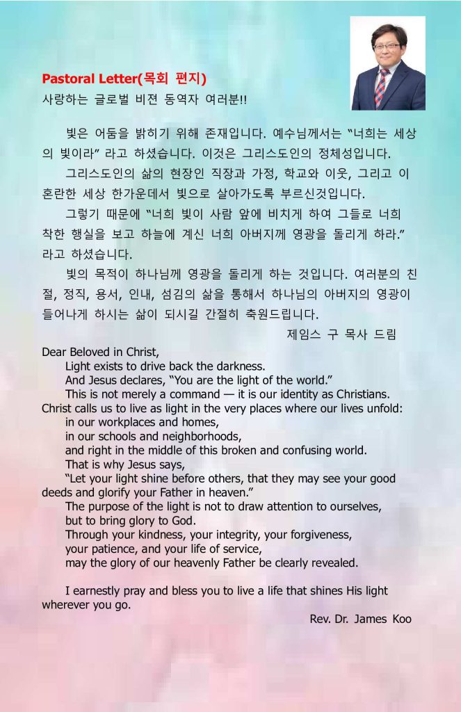 1. 글로벌 비전 교회 예배에 참석하신 모든 분을 환영하고 축복합니다.