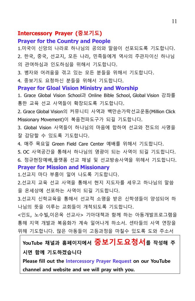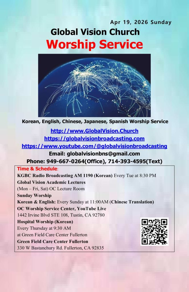 2.매주 주일 예배는 현장과 유투브@Global Vision Broadcasting 채널에서 Live로 송출됩니다. 구독 및 좋아요, 많은 추천바랍니다.