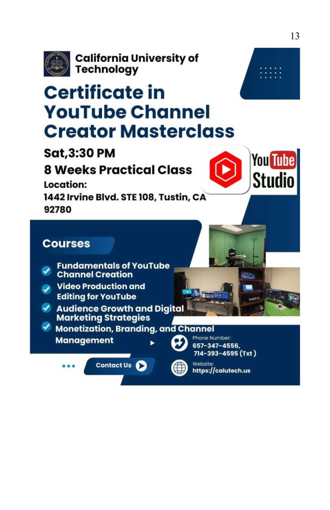 - A Certificate in Artificial Intelligence Tools and Applications program, hosted by Cal U Tech and sponsored by Vrew AI, will begin every Saturday at 1:30 PM as a regular course.
