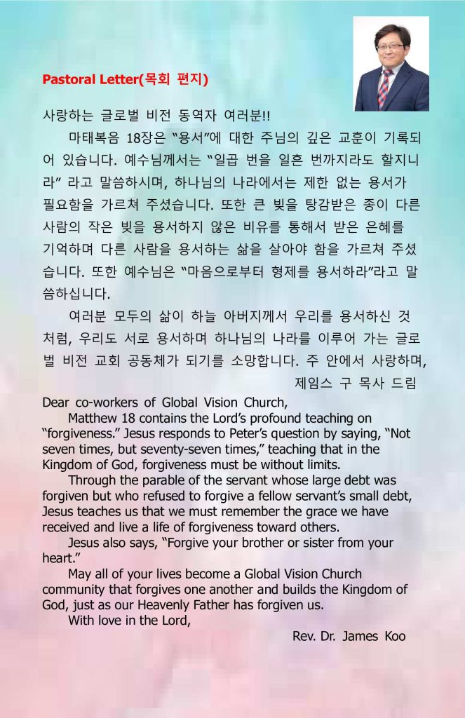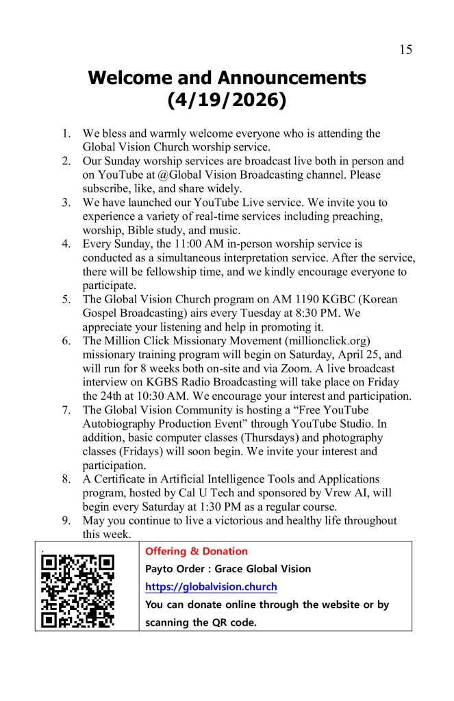 1. .글로벌 비전 교회 예배에 참석하신 모든 분을 축복하고 환영합니다.