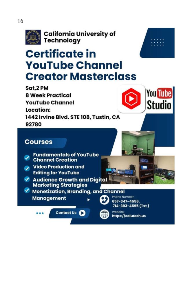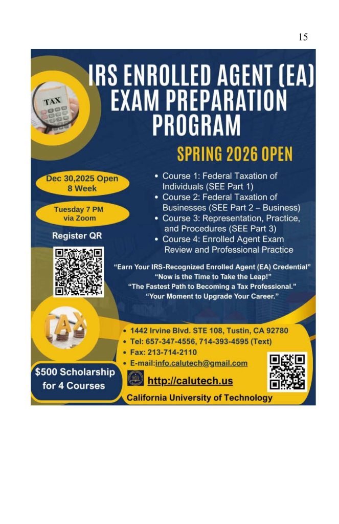9. CAL U TECH Professional Certificate Programs, including the Enrolled Agent (Federal Tax Practitioner) course and the YouTube Master Program, are now available.