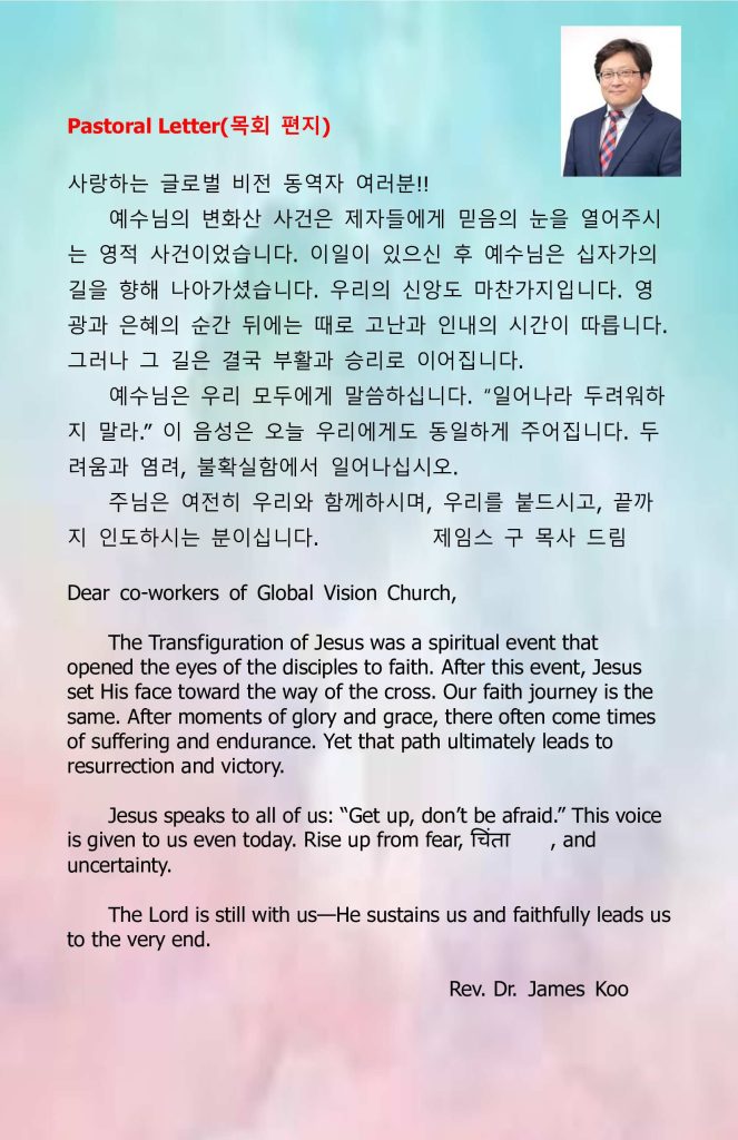 2.매주 주일 예배는 현장과 유투브@Global Vision Broadcasting 채널에서 Live로 송출됩니다. 구독 및 좋아요, 많은 추천바랍니다.