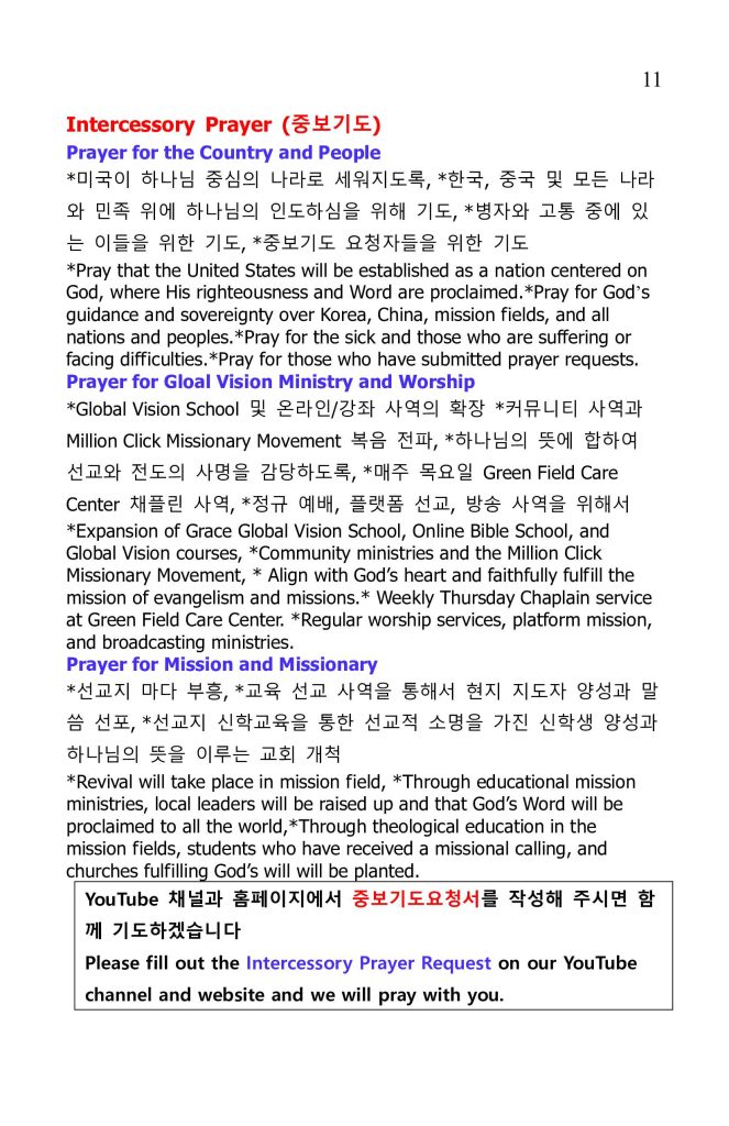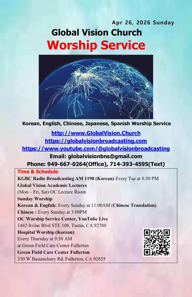 2.매주 주일 예배는 현장과 유투브@Global Vision Broadcasting 채널에서 Live로 송출됩니다. 구독 및 좋아요, 많은 추천바랍니다.