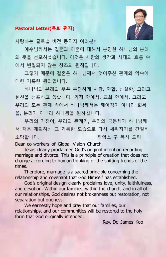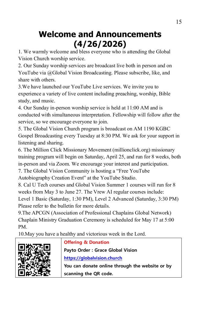 1. .글로벌 비전 교회 예배에 참석하신 모든 분을 축복하고 환영합니다.